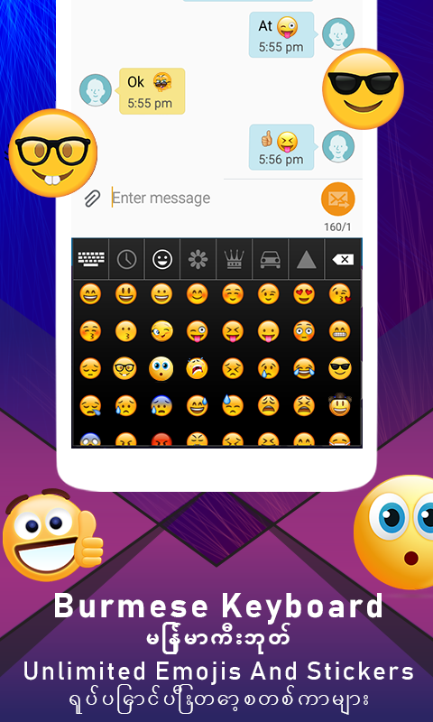 The Myanmar Keyboard Theme is the new way to use your default mobile keyboard with multiple colors, beautiful keyboard backgrounds, emoji keyboard for mobile. This is best keyboard theme that likely compatible with android keyboard and best app to customize keyboard with new look. Download latest colorful theme keyboard with keyboard wallpaper to give change your phone look into a new way. Beautiful themes, color sticker keyboard, emoticon and smiley emoji keyboard. Free for download, colorful keyboard for Android theme, keyboard theme for chatting, color keyboards for android, color changing keyboards, colorful keyboard themes.