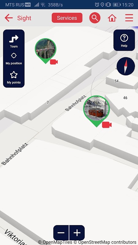 myguide.city app shows you the chosen touristic route on the 3D offline map. You will see on the map the sights and other city objects like restaurants, WC's etc. It shows the user's location. The internal navigator of the app composes for you a pedestrian route to your target in the city;