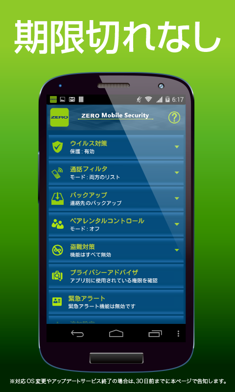 ZERO® Mobile Security! Aplikasi keamanan untuk smartphone dengan "0" (tidak ada) biaya perpanjangan.