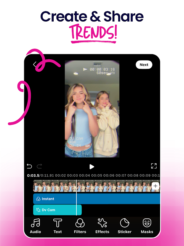 Remix Semuanya — Potong, gabungkan, duet, dan tambahkan musik, efek, stiker, dan filter