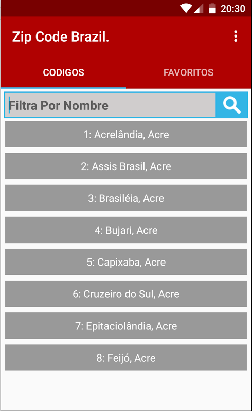 Esta Aplicación es del Código Postal Es una aplicación gratuita que permite al usuario buscar la información de todas las ciudades en Brazil por código postal o el nombre de la ciudad.