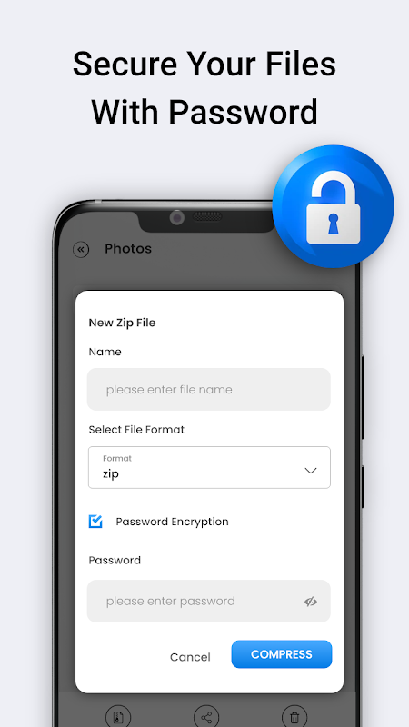The zip unzip ekstraktor file terikat untuk melepaskan atau melakukan perubahan atas file Rar, merekam dengan mengompresi file. Di perangkat ekstraktor zip ini, Anda dapat memisahkan dan meng-unzip file terkompresi, dan dokumen dalam pengaturan yang berbeda. zip unzip ekstraktor file adalah arsip file untuk file 7zip, file kompres, file RAR, dan file terkompresi lainnya. Pembaca file zip mendukung file zip, ekstraktor kompres, pengarsipan file, 7zip, kompres file, dan ekstraktor dokumen untuk android.