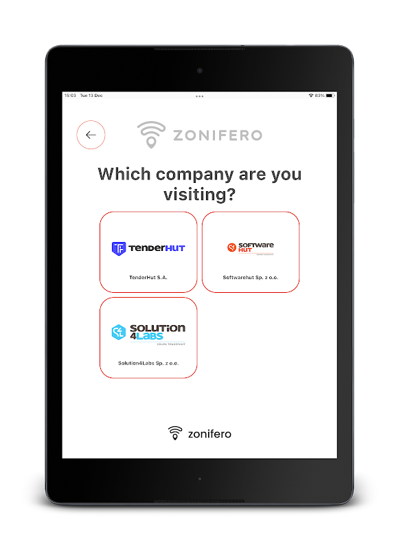 Zonifero Lobby memungkinkan Anda dengan mudah mendaftarkan tamu Anda.