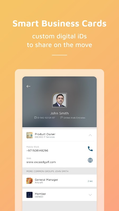 Level up! Exchange your business card with an instant digital identity. Share any card detail you want in seconds, with people you meet on-the-go.
