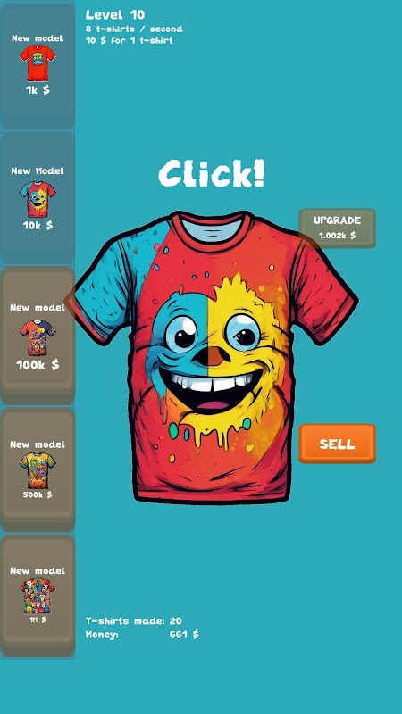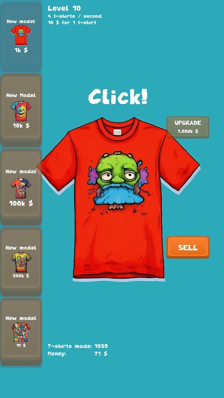 In the game, the player plays the role of a master who applies a design to a T-shirt. Upgrade your skills. Discover new designs for T-shirts and sell them. Become a rich person making money from this skill