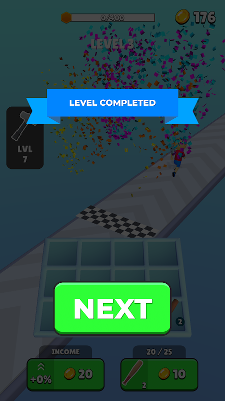 Merge weapons to destoy different objects. Tap to hit faster. Reach maximum weapon RPG and pass finall props.