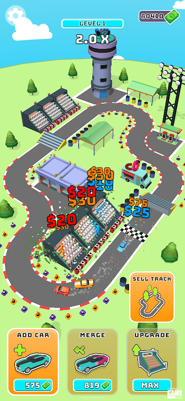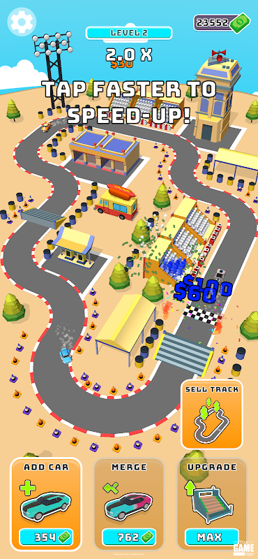 Manage your racetrack by adding luxury cars, merging them to get new ones. The cars go round and round, and each lap you earn money. Keep earning and keep upgrading