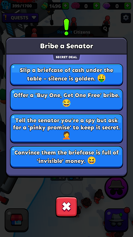 Build your network, uncover secrets, and rule from the shadows in Idle Spy.