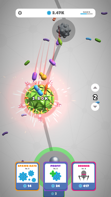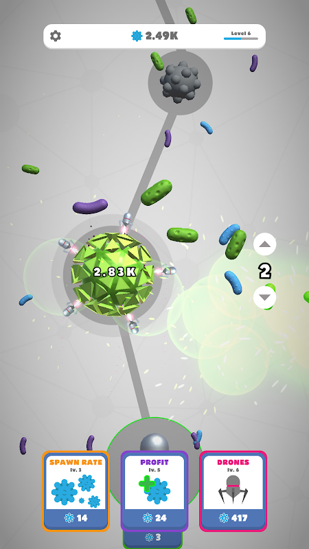 Spend your cells to buy powerful drones to automatically attack the viruses.