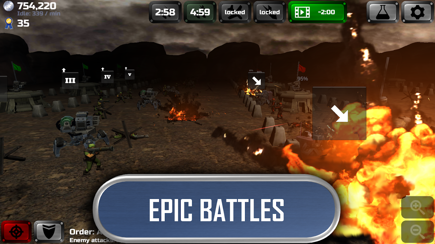 Lead your army through epic battles and conquer the whole world. Take command of up to five platoons, whose units and equipment can be leveled up. Conquer different battlefields until you have finally defeated all your enemies.