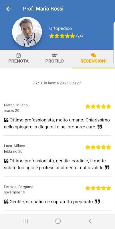 "Convenient because you book online, fast because once you have chosen the doctor, just a few clicks are enough to get the appointment, transparent because you know immediately how much you will have to pay." - Leggo.it