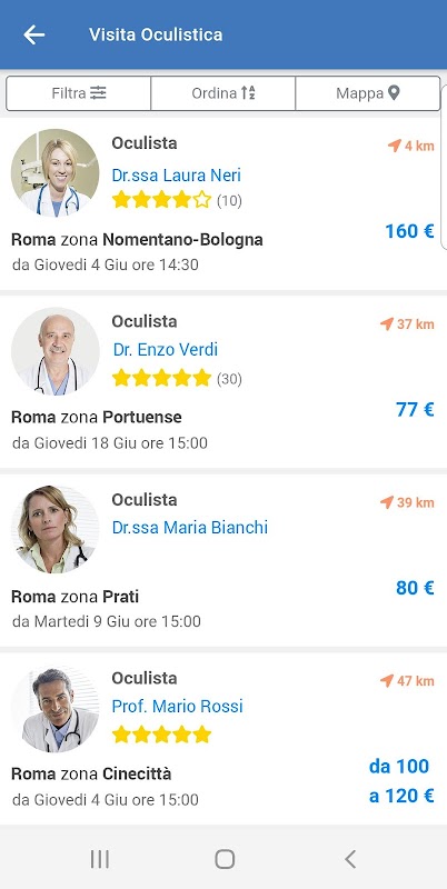 Consult CVs, services, costs, the distance from you and the opinions expressed by other patients on the over 8000 medical specialists present, as well as days and times of availability in which it is possible to book.