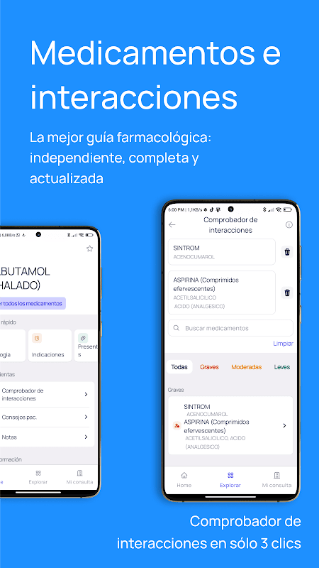 - Complete and independent Vademecum of the more than 15,000 medicines approved for sale. A complete pharmacological guide with powerful safety filters in the prescription (eg, pregnancy, IR, HI, lactation, allergies to excipients) from independent institutional sources.