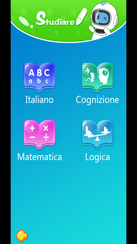 Funzione “Studiare”: permette di imparare con divertimento assieme ad IDOL robot le basi dell’Italiano, le basi della Matematica, tantissimi nomi di cose, animali, frutta, parti del corpo, colori, ecc. e in fine tanti Ragionamenti con grandezze, proporzioni, differenze, ecc.