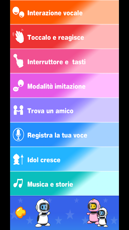 Tramite questa Applicazione il bambino potrà interagire in tantissimi modi con IDOL robot.
