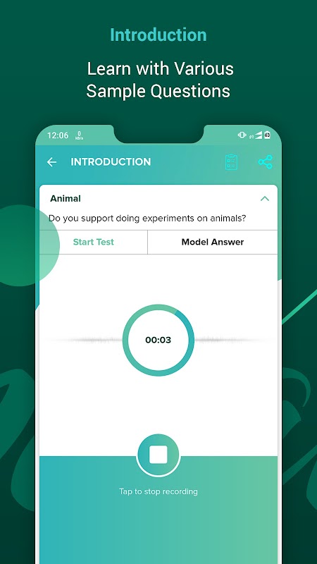 👉 Voice Recorder: Record your test and listen to the test speech to improve the quality of your preparation.