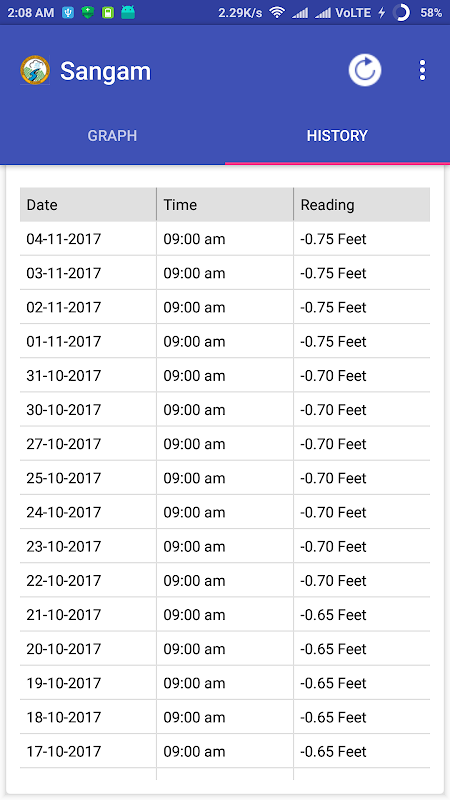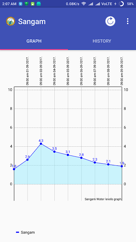 * Current gauge values of three sites- Ram Munshi Bagh, Sangam and Asham.