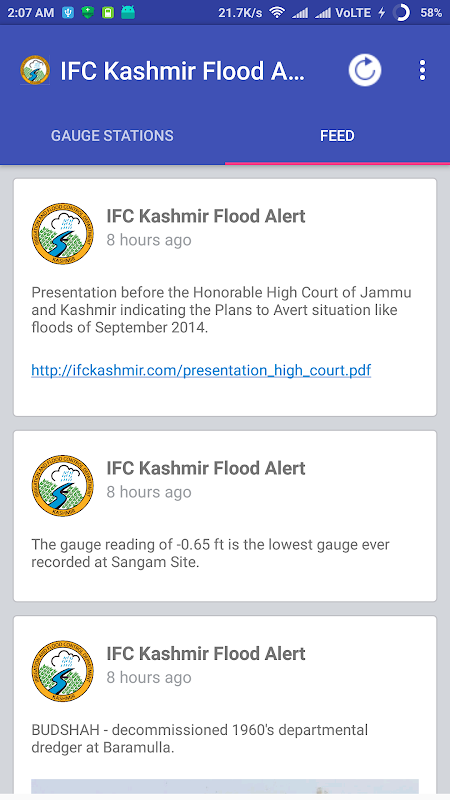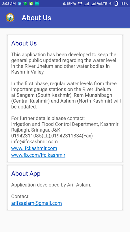 IFC Kashmir is an android mobile phone application developed for IFC ( Irrigation and Flood Control Department ) Kashmir.