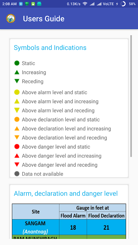 ### The gauge levels are manually measured by Department of Irrigation and Flood Control Kashmir without the assistance of any satellite. Realtime gauge values shall be implemented in future updates.... hopefully inshaAllah