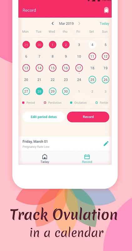 Keep your menstrual diary, get in control of your period and ovulation with a special calender, be reminded of your next cycle.