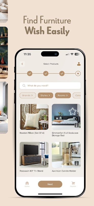 Generate high-quality visuals of your dream rooms with just a few taps.