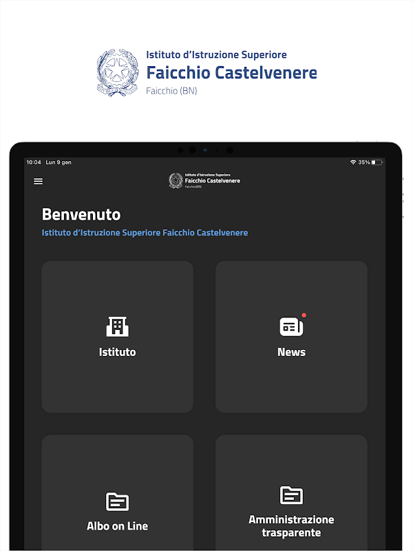 Discover the app of the Faicchio Institute of Higher Education - Castelvenere di Faicchio. You will be able to view all the institute's information and contacts, consult the contents, receive push notifications based on your role and interests, access the digital desk and book an appointment with the secretariat or presidency.
