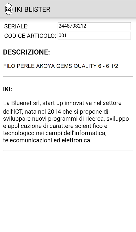 IKI BLISTER è l'App che consente di verificare l'autenticità e la non manomissione dei gioielli.