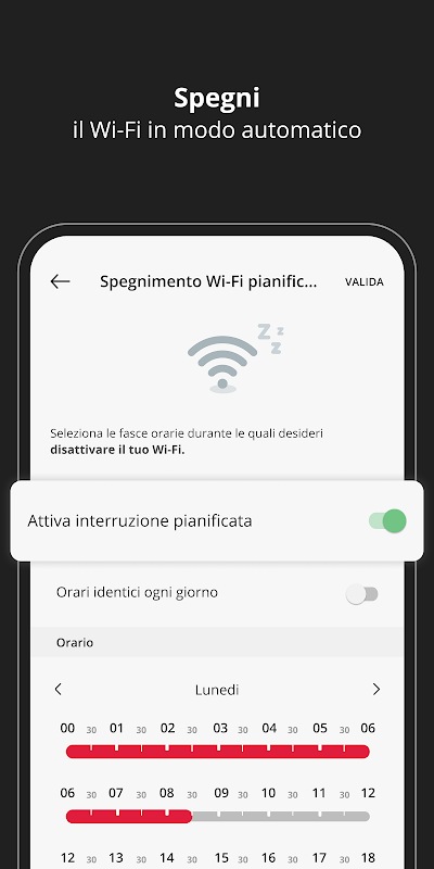 Carve out a moment of digital detox, setting the automatic shutdown of the connection in the desired time slots.