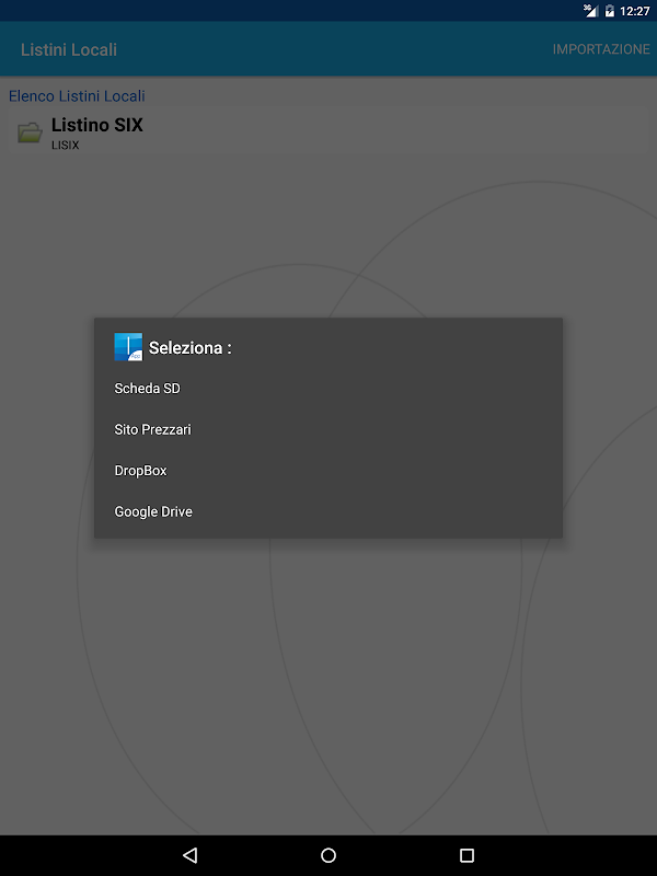 È possibile scaricare i listini direttamente dal sito Prezzari di STR http://prezzari.str.it, oppure importare i listini in formato SIX tramite Google Drive, Dropbox o SD Card.