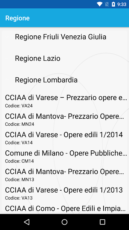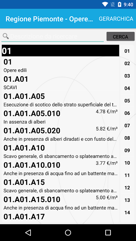 Ogni prezzario può essere consultato tramite struttura gerarchica o con vista piatta accelerata per capitoli.