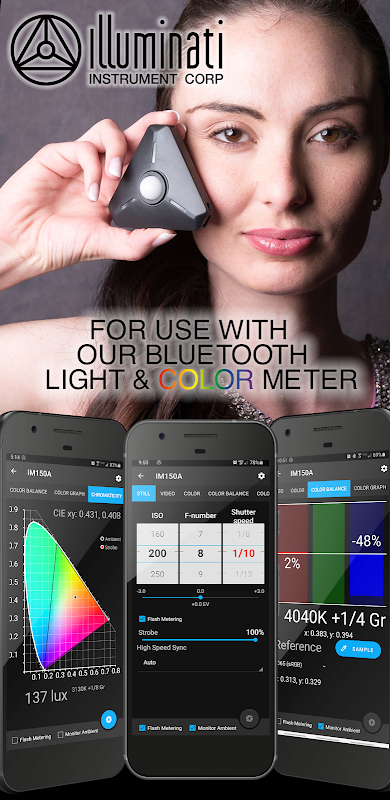 The Illuminati Meter app is for use with Illuminati Instruments light & color meters.