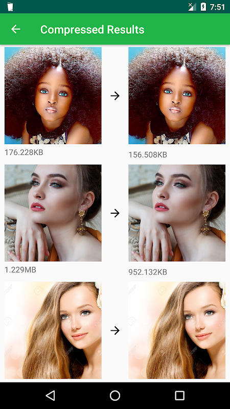 * Your original photos are the same. The compressed photos will be saved to "Photo Compressor" folder inside your sdcard