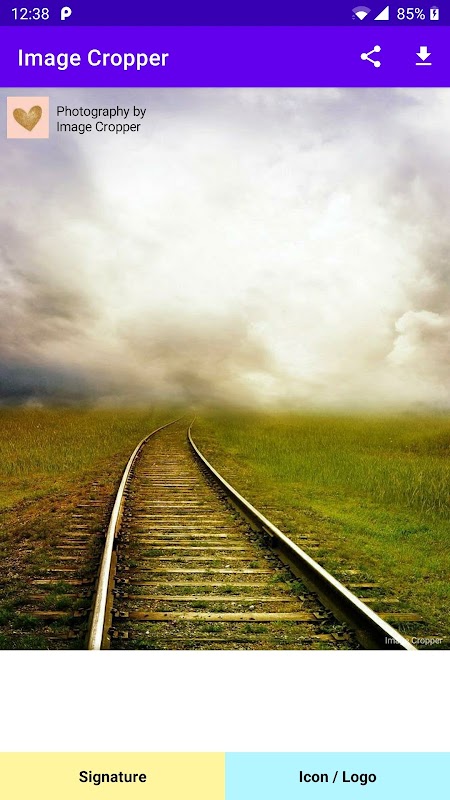 Later, Cropped Image will be displayed to add signature or logo, save and share.