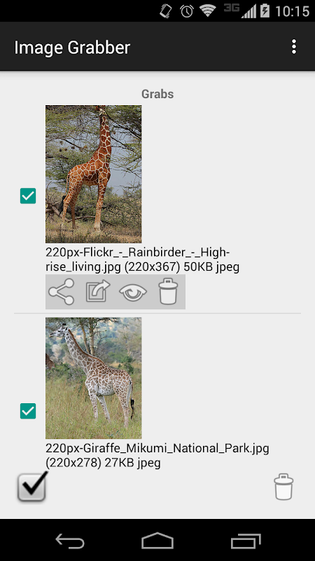 Share or paste the URL of any public HTML page into Image Grabber. All of the referenced images will be displayed and may be saved to your device.