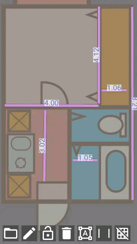 4. Touch the pen icon and draw another straight line to display the length relative to the reference line.