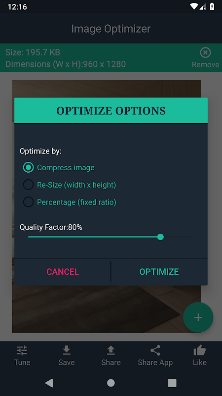 2. Image Optimizer & Compressor allows you to tune quality of compressed image.