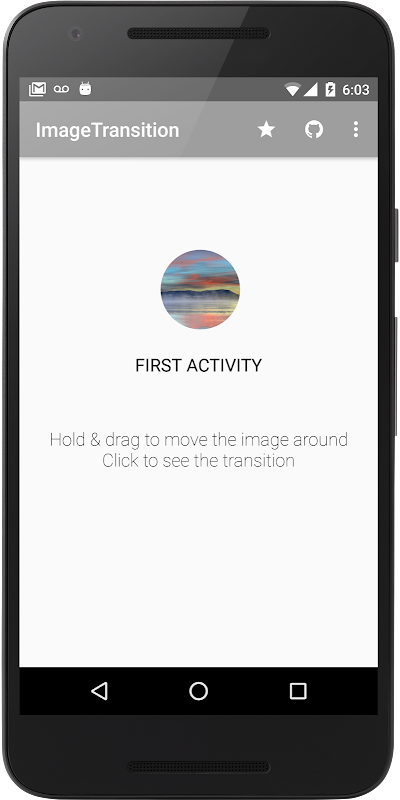 Although this demo's (and the library's) min SDK version is set to 14, the transition will only be seen on API >=21.