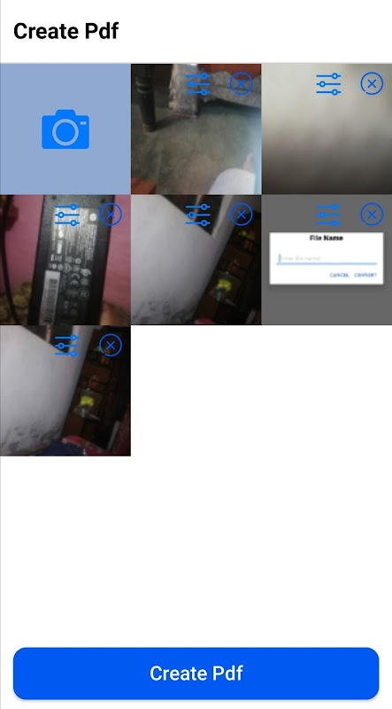 Choose images from Camera or Gallery for conversion.