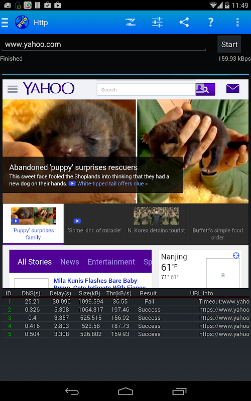 3, Can test how much time to join the network, how fast to open the website, and the ftp throughput on Android device.