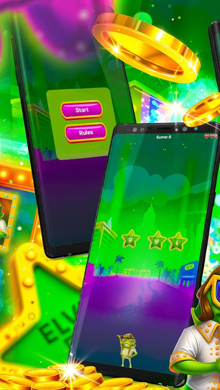 Elvis Frog is a fast-paced arcade game where you help a green frog shoot at protruding red frogs while dodging collisions. Collect coins to increase your score and enjoy endless fun. Watch your reflexes and see how long you can survive the madness!