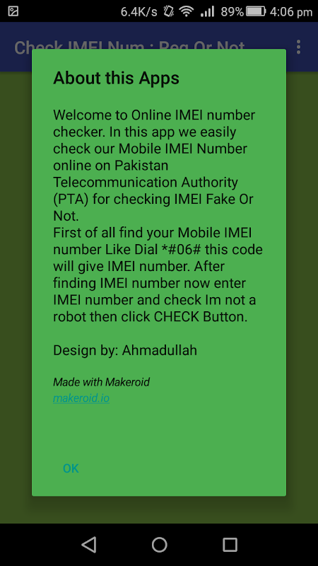 Welcome to IMEI number checker. In this app we easily check our Mobile IMEI Number on Pakistan Telecommunication Authority (PTA) for checking IMEI Fake Or Not.