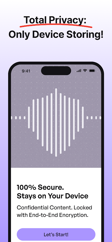 * ON-DEVICE PRIVACY: Your recordings and transcripts are stored securely on your device.