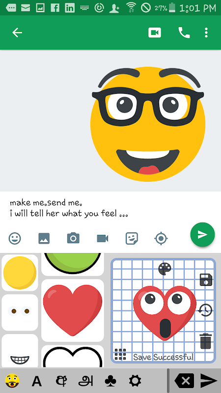 <+> Using this keyboard you can create and send your own emojis to friends.
