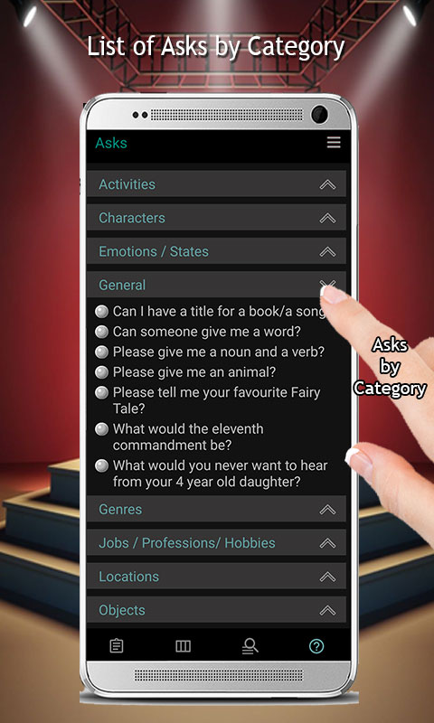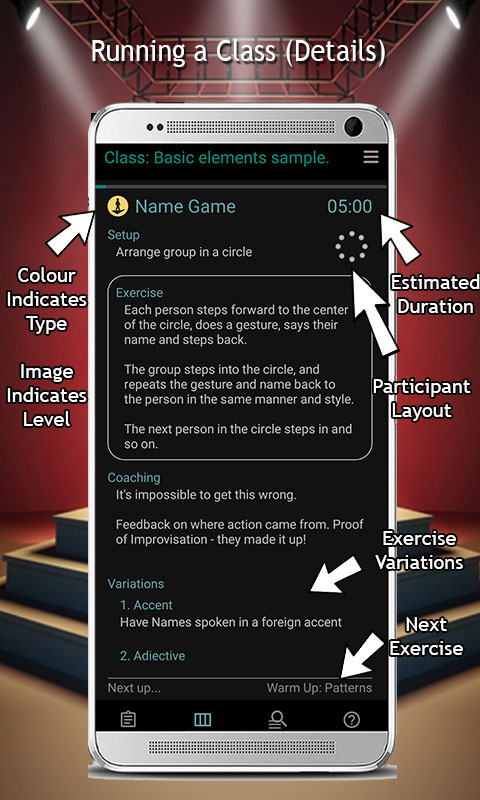 I’d been running Improv classes for well over ten year and realised that I was collecting a lot of slips of paper with classes on that I kept referring to to remind me of the exercises I had to hand and which I’d already used. I thought – there must be an app for that, - but there wasn’t – so I, um, in true Improv style, I made one up!