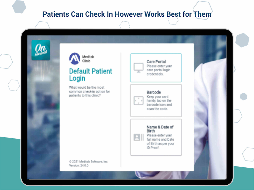IMS OnArrival is the newest addition to Meditab's healthcare management product line. It is your automated receptionist! Automate the Clinic’s check-in process. Our simple yet innovative solution facilitates just that, and More!