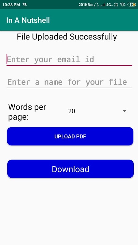 The best way to summarize PDFs is now available right on your Android device.Just upload the required PDF and download the summarized text file in a fly.Select the words per page to get the desired level of summarization