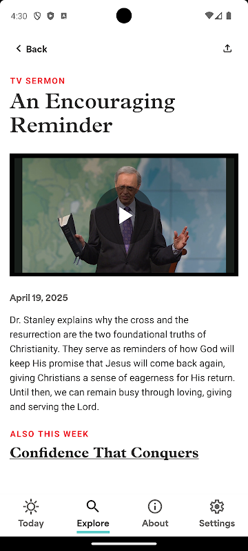 For nearly 50 years, In Touch Ministries and Dr. Charles Stanley have been trusted sources for solid, biblical teaching. With the In Touch app, you get all the Christ-centered teaching from Dr. Stanley that you've come to know and love, right in the palm of your hand.