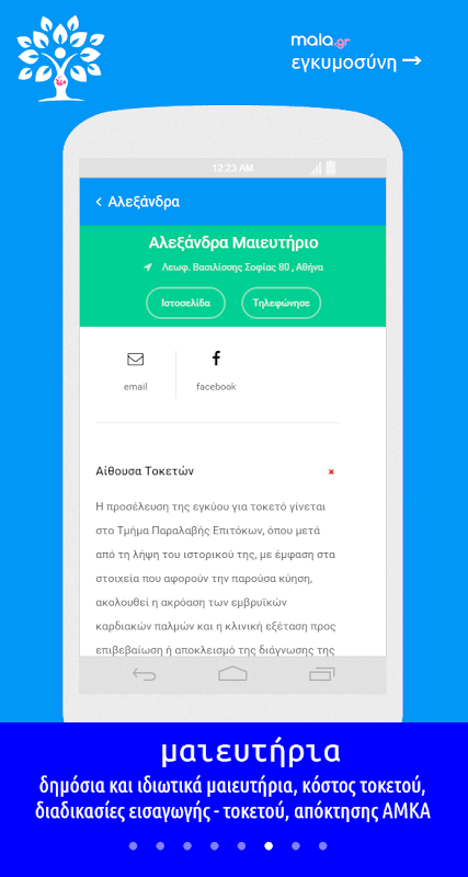 आवेदन प्रसूति मामलों के विशेषज्ञ जो स्त्रीरोग विशेषज्ञ और दाइयों द्वारा डिजाइन किया गया था।
