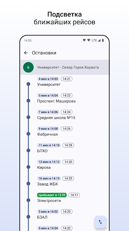 क्या आपको किसी विशिष्ट स्टॉप पर निकटतम उड़ान के आगमन का समय जानने की आवश्यकता है? मार्ग पर क्लिक करें - एप्लिकेशन निकटतम परिवहन के आगमन समय के साथ स्टॉप की एक सूची खोलेगा।