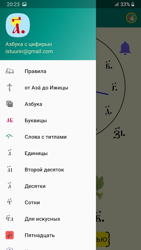 सिम्युलेटर में मानसिक व्यायाम चर्च स्लावोनिक वर्णमाला और त्सिफिरी का अध्ययन करने के लिए संज्ञानात्मक मनोविज्ञान, भाषा विज्ञान और पहेली सुलझाने के क्षेत्र से ज्ञात सिद्धांतों के अनुसार व्यवस्थित किया जाता है। अधिकांश समस्याएं आपको एक साधारण निर्णय लेने के लिए कहती हैं - दोनों में से कौन सा? आप अनुमान लगा सकते हैं कि संख्याओं वाले अनुभागों में स्विच किस लिए जोड़ा गया है।